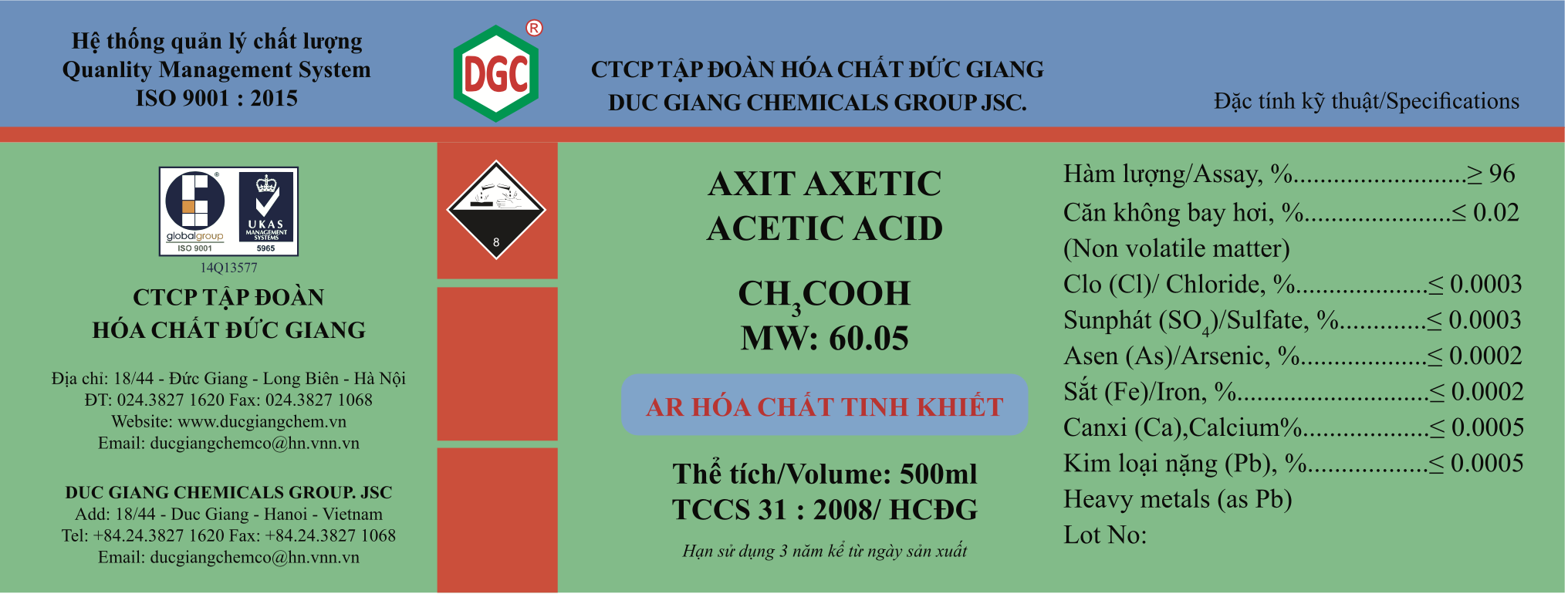 Acetic acid Axit axetic |