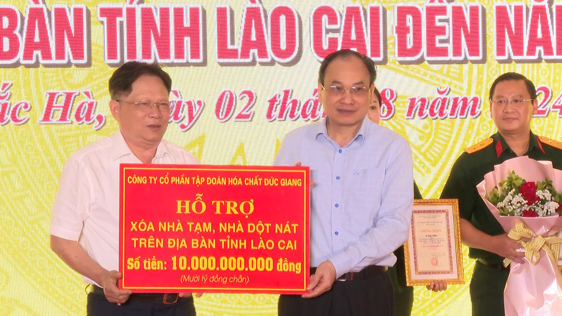 Tập đoàn Hóa Chất Đức Giang cùng một số doanh nghiệp lớn tại địa phương đã hưởng ứng, chung tay ủng hộ 10 tỷ đồng cho phong trào thi đua xóa nhà tạm, nhà dột với thông điệp ” Triệu tấm lòng yêu thương, nghìn mái nhà hạnh phúc.