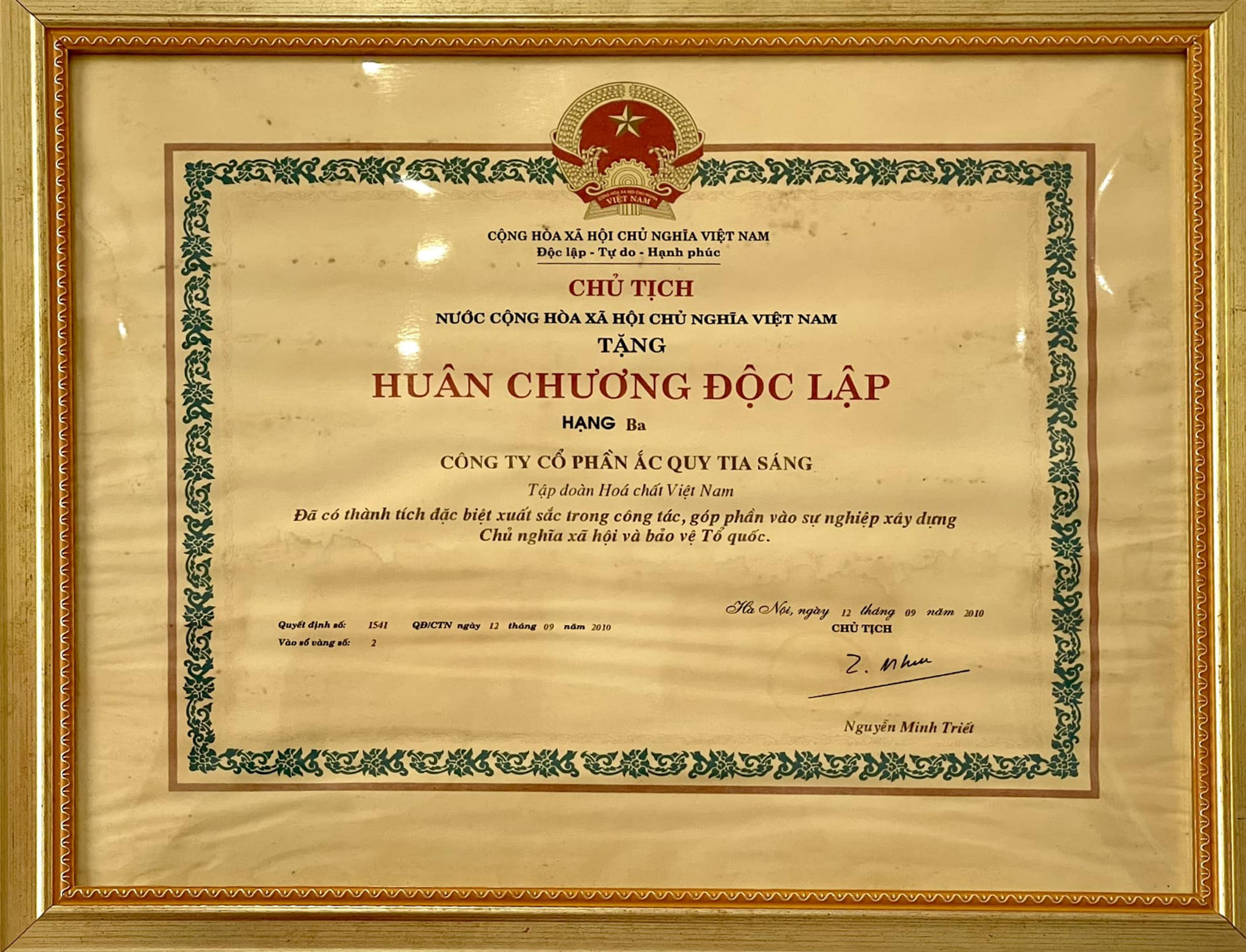 Ắc quy Tia Sáng đã vinh dự được chính phủ trao tặng huân chương lao động hạng nhất năm 2006, huân chương độc lập hạng ba năm 2010, góp phần vào công cuộc xây dựng đất nước. Hiện nay công ty đã niêm yết và giao dịch trên sàn HNX với mã Cổ phiếu: TSB.